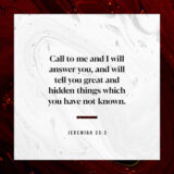 Later that evening she was on a group text with a few of her closest family members, sharing intimately as they navigated the upcoming one-year anniversary of her sister’s passing. One of them wrote Jeremiah 33:3 .